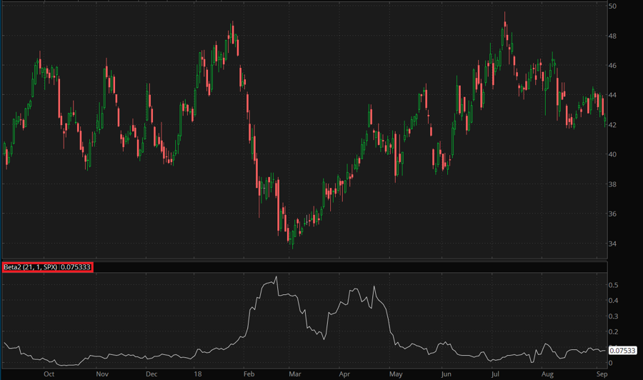 Instead of variance of market's rate of change (as in Beta), Beta2 uses variance of security's rate of change.