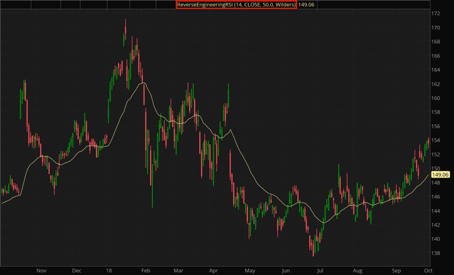 The Reverse Engineering RSI study is a technical indicator aimed at estimating the price level at which the Relative Strength Index (RSI) would be equal to the specified value. This might be useful when calculating price levels of support and resistance based on those of RSI.