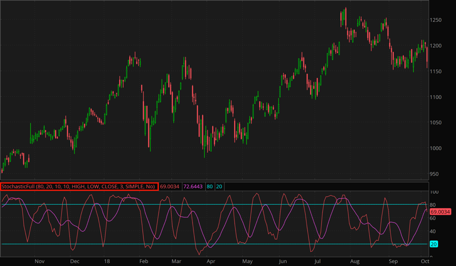 The Stochastic Full study is a generalized version of the Stochastic Fast and the Stochastic Slow oscillators. The three oscillators are all based on the observationthat in an uptrending market, prices tend to close near the upper end of the price range. In downtrends, close prices are often seen approach the lower end.